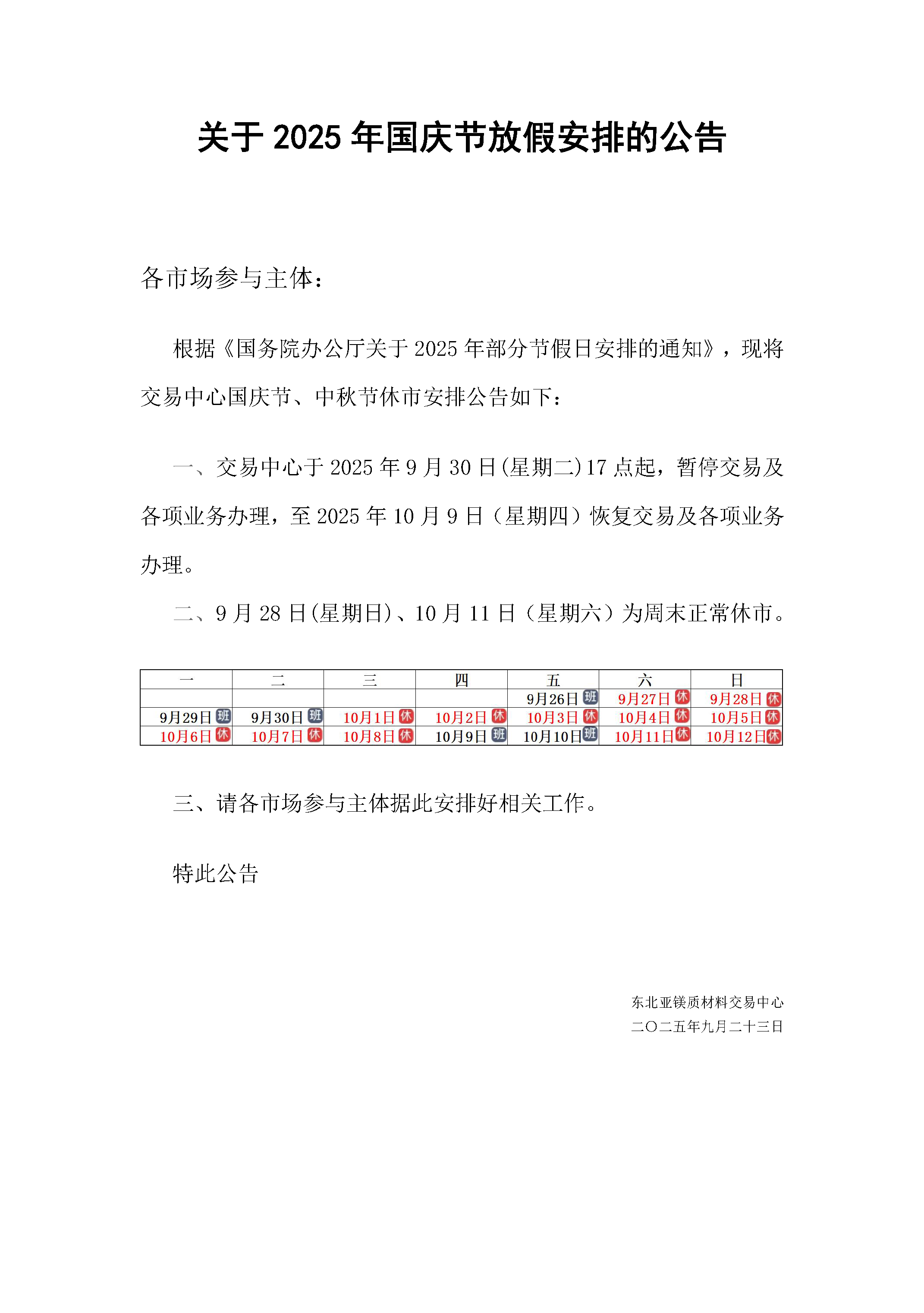 關(guān)于國(guó)慶節(jié)放假安排的通知